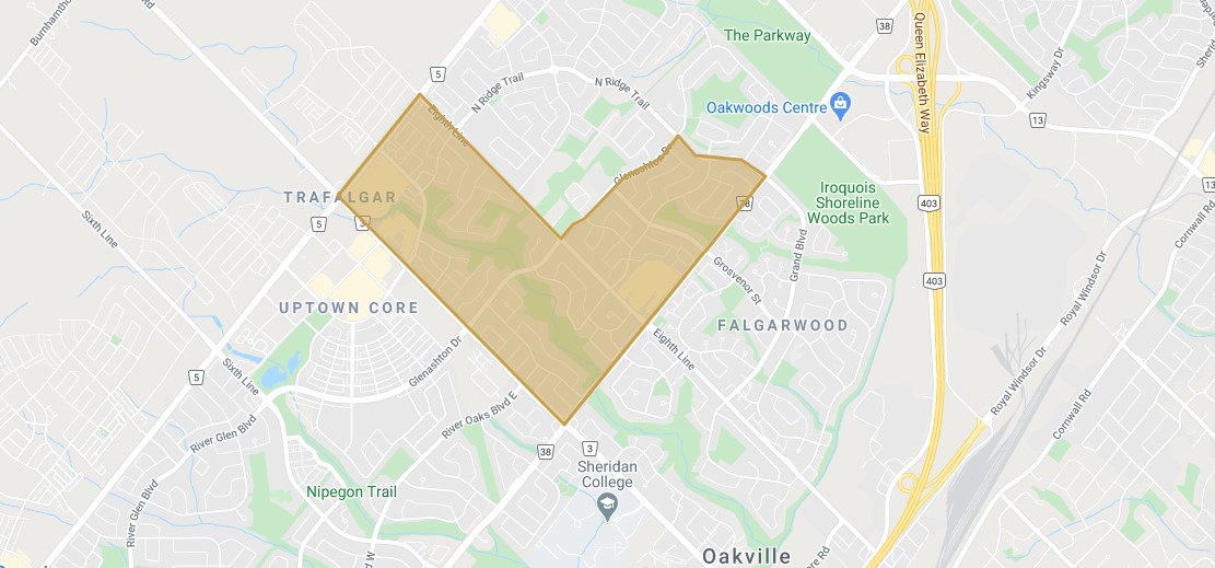 Located just west Joshua Creek, Wedgewood Creek was built majorly in the 1980s. The neighborhood is bordered by Dundas Street on the north, Trafalgar/Postridge Road on the west, Upper Middle Road to the south and Eighth Line/Grand Blvd to the east. With a livability score of 85, Wedgewood Oakville ranks better than 99% of the neighborhoods in Oakville. It is ranked in the 4th place.